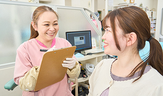 前歯部の欠損をインプラント治療で補ったケース。歯並びも矯正しています。