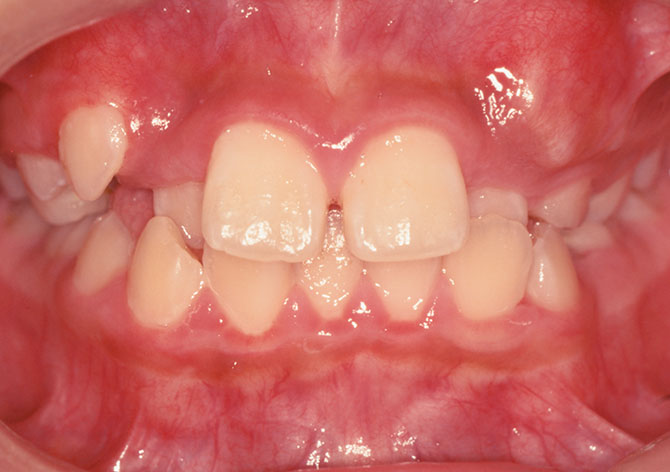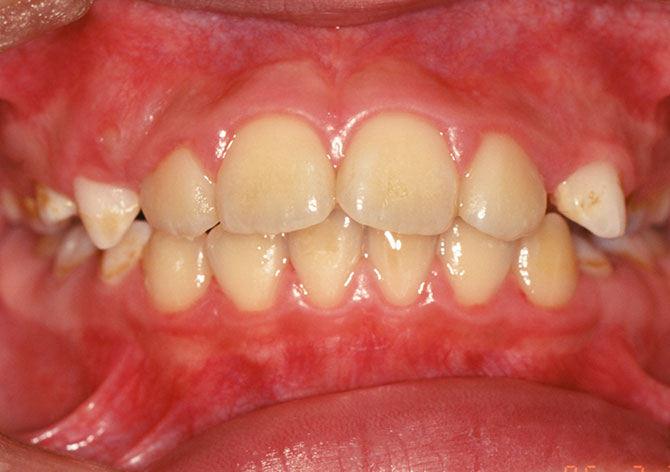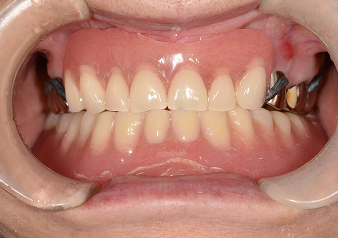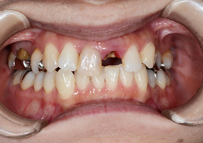 前歯部の欠損をインプラント治療で補ったケース。歯並びも矯正しています。