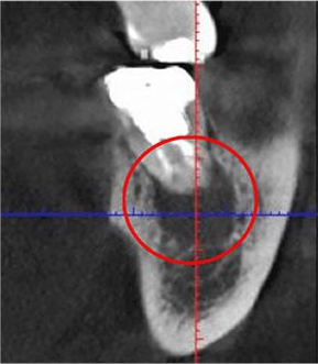 下の画像は他の治療のケースですが、同じ部位を2次元レントゲン(左)と3次元CT(右)で撮影したものです。